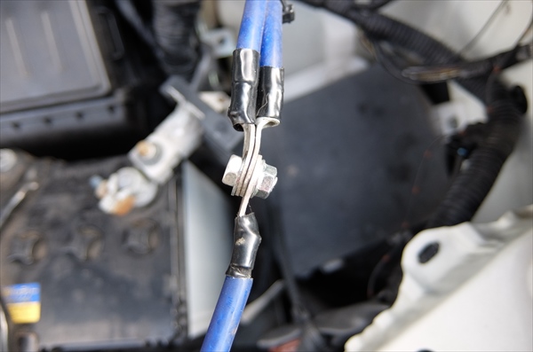 今回バッテリーの交換と一緒に行うのが、アーシングの青いケーブルの引き直し。