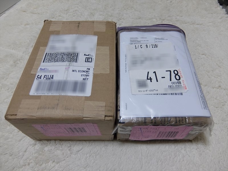 運送業者はどちらもFedEXなので伝票も似てて、パッと見同じ荷物みたいですね。