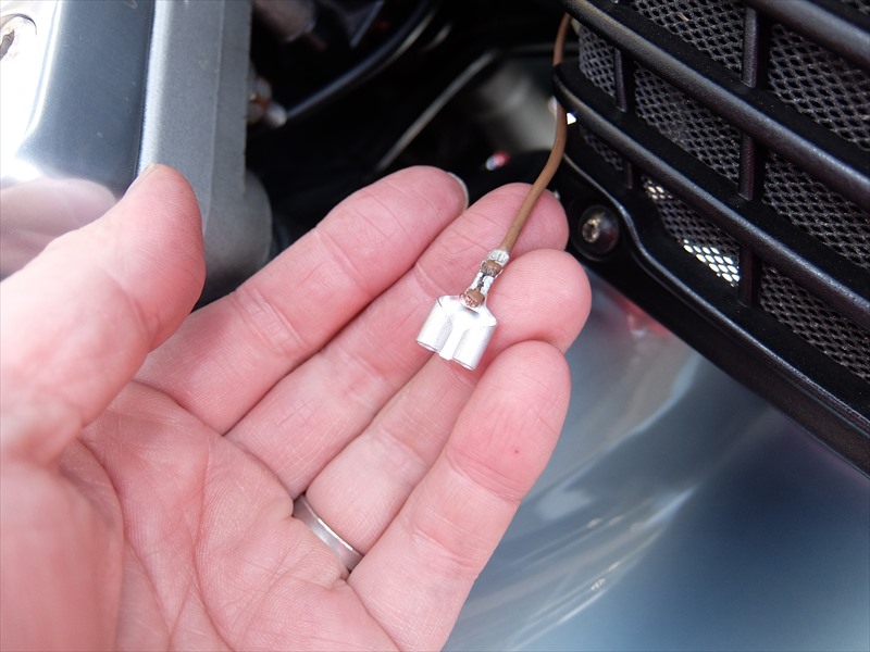 で、この色の配線をウインカーリレーと純正スイッチの間の適当なところで分岐させるわけです。