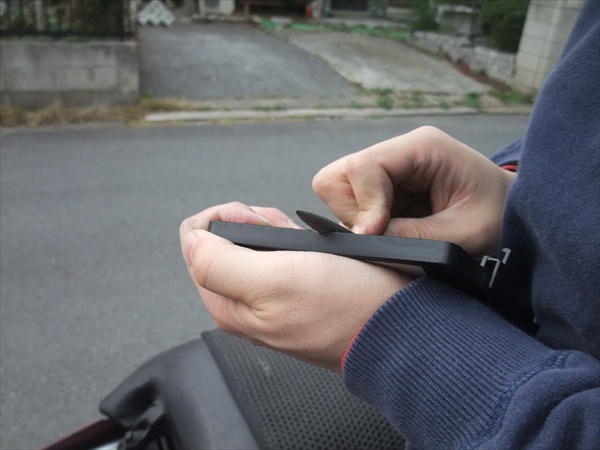 風による落下が心配だったので、隣に置いている自転車の前カゴに入れました。