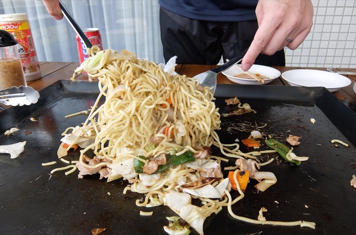 焼く人は、焼きそばの調理も一手に引き受けます。