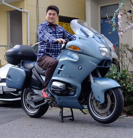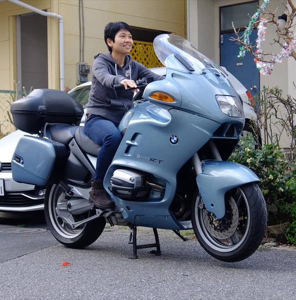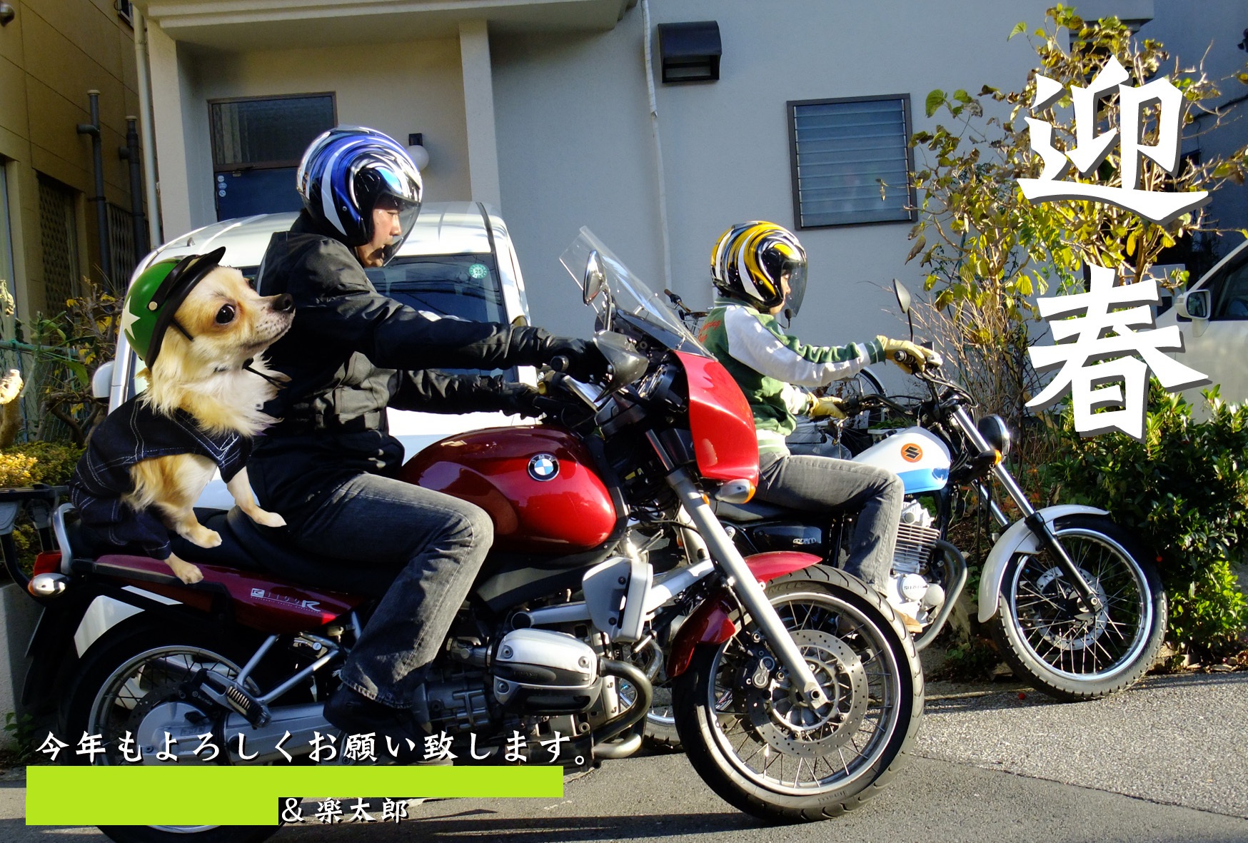 コレなんす。家の前でバイク+ライダーを撮影した写真に楽太郎を合成したもの。
