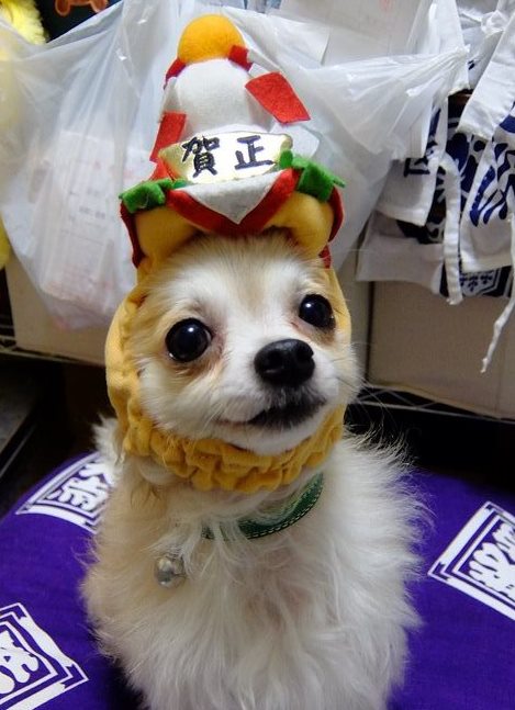 楽太郎は室内で鏡餅被せて別撮り。