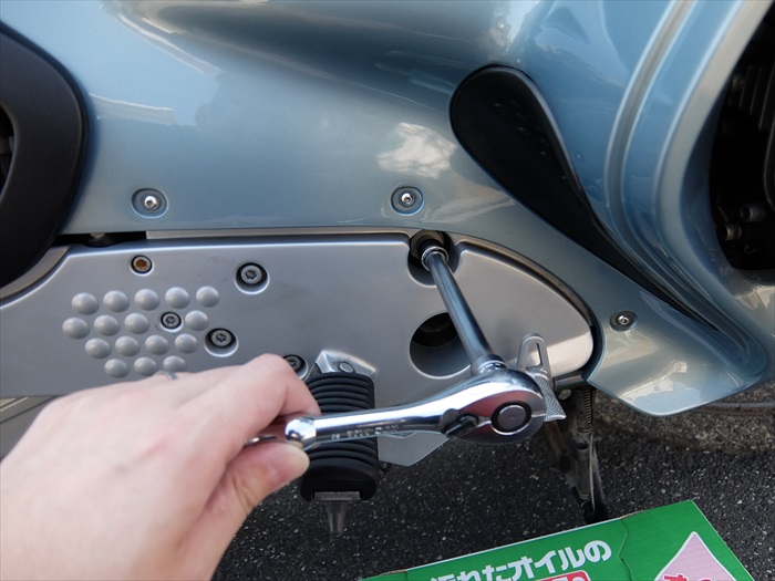 作業前にオイルを温めて抜きやすくするために15分ほど走行しておきます。