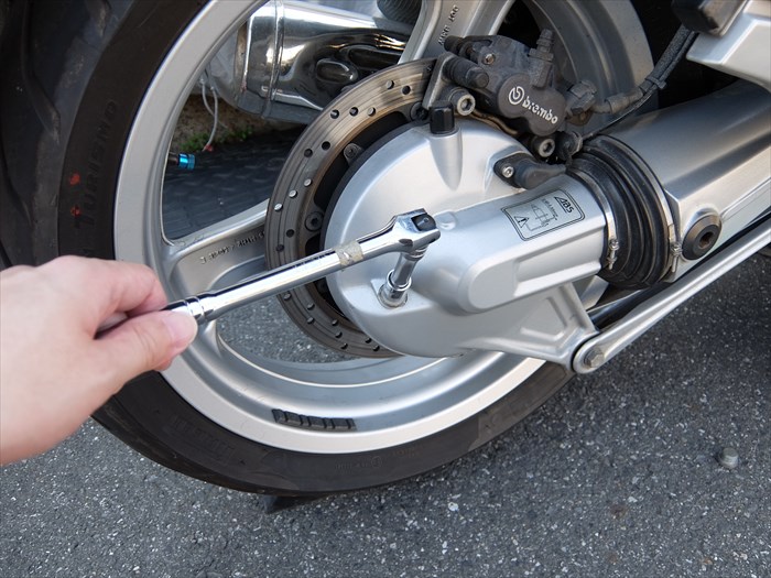 R1100系(5速車)のオイル容量はミッション(800cc)+ファイナル(230cc)でして、