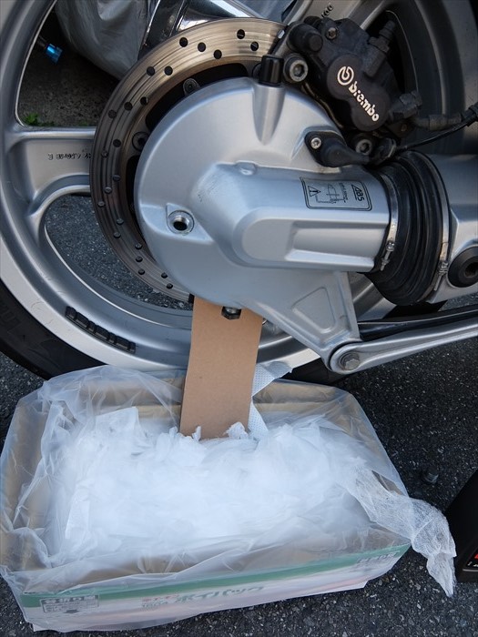 ドレーンボルトを開ける前に、廃油が確実に処理ボックスに入るようにダンボール等で養生します。