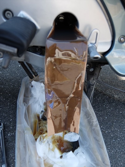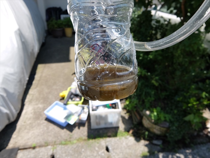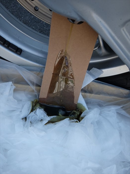 ドレーンを開けるとこんな感じで廃油が流れてきます。