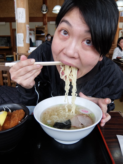 出発から150kmほど走ると腹も減ってきたので、メンチカツで腹ごしらえ。