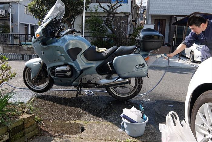 上面をシャンプーした後に流してからエンジンや足回りを洗ったほうが良いです。
