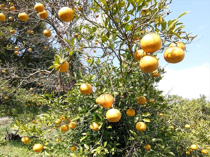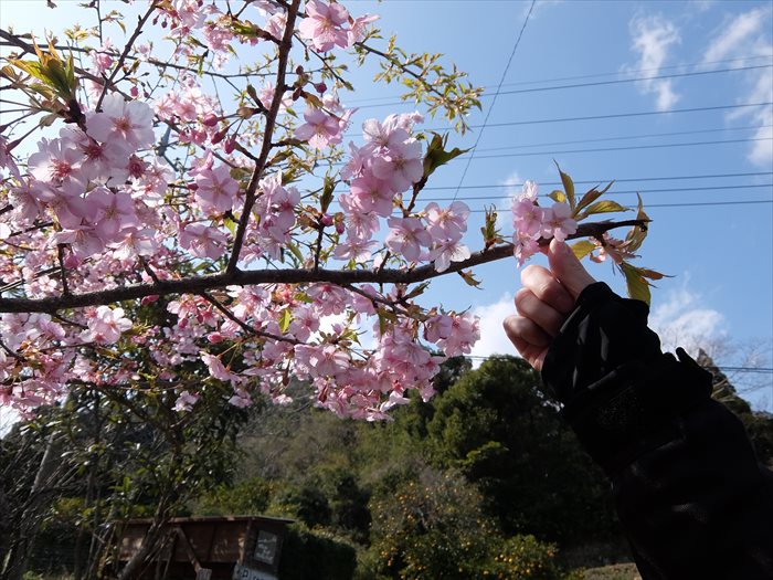 ワンコさんに癒やされた後、駐車場に咲いていた河津桜に梅に蜜柑…テンコ盛りの季節感の記念撮影ですw