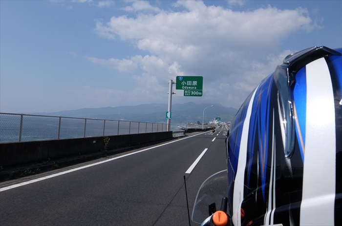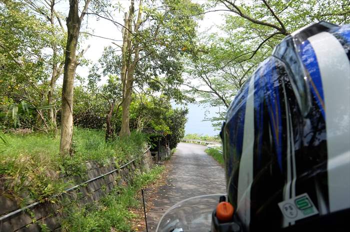 この通路で、国道とバイクを停めた川を横切るんです。