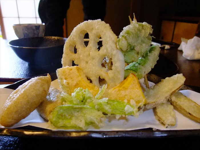 季節の野菜と蕎麦がきの天ぷら、400円。