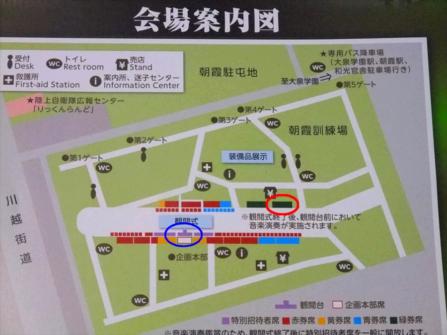 ちなみに首相が観閲する場所は青丸で囲った場所ですので、かなり離れてます。