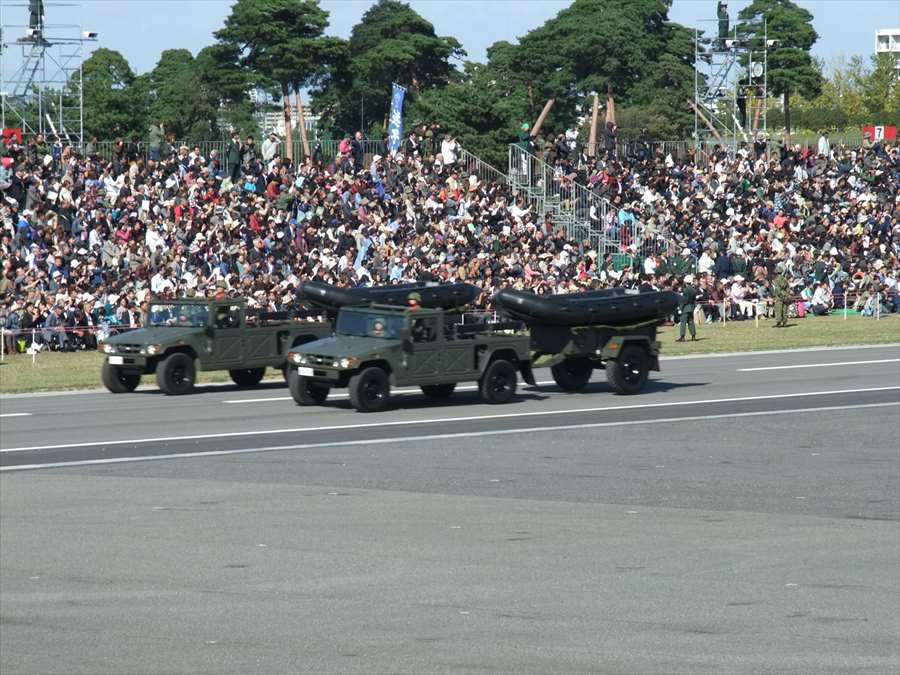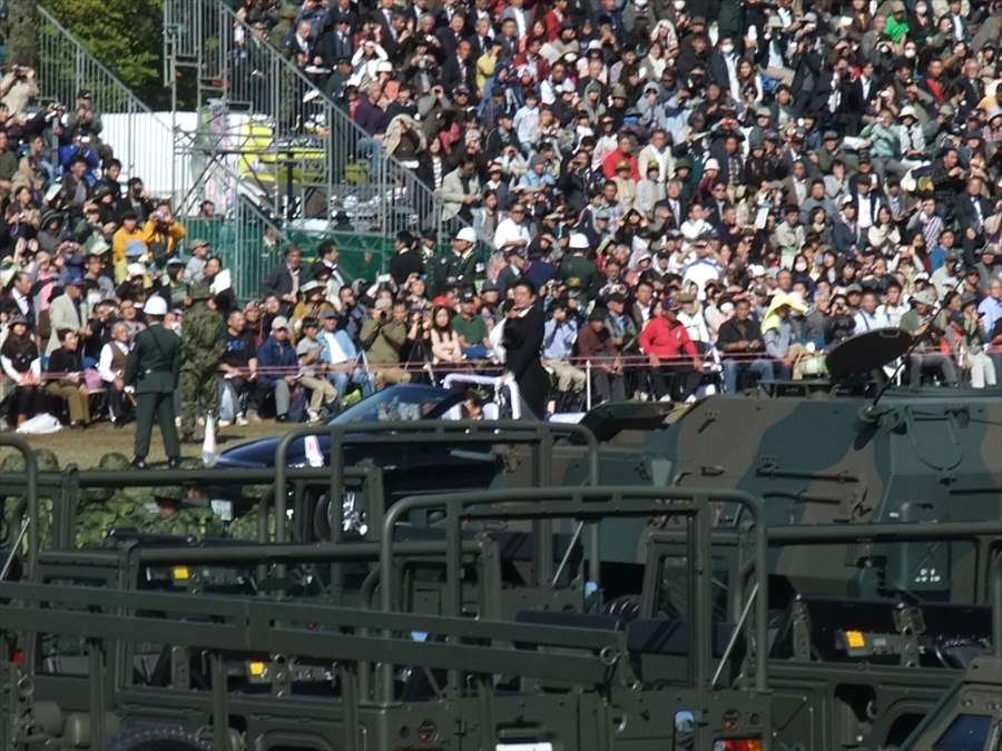 観閲式って何?という方、ウィキペディア参照。まぁざっくり言うと、自衛隊の最高指揮官たる首相が巡視するセレモニーですね。
