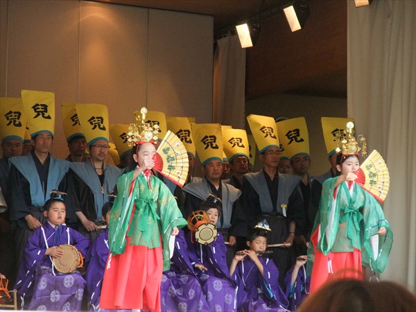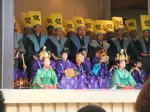 稚児は、ご覧のように舞姫と囃方の子供達と、地謡の大人で随所で稚児舞を披露します。