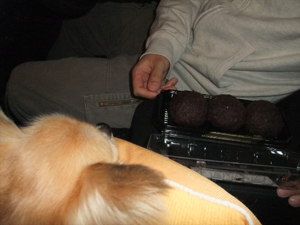 車内で、資さんうどんでテイクアウトしたぼたもちを食いながら渋滞情報確認。