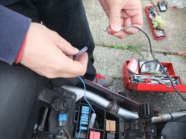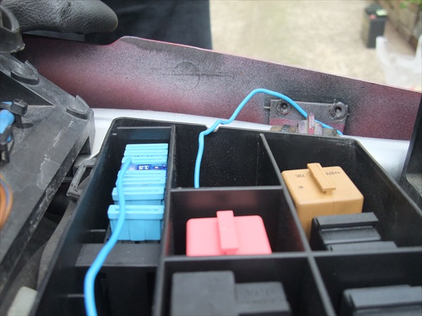 こんな風にヒューズを1本入れ替えると、延びている電線からプラス電源が供給されます。