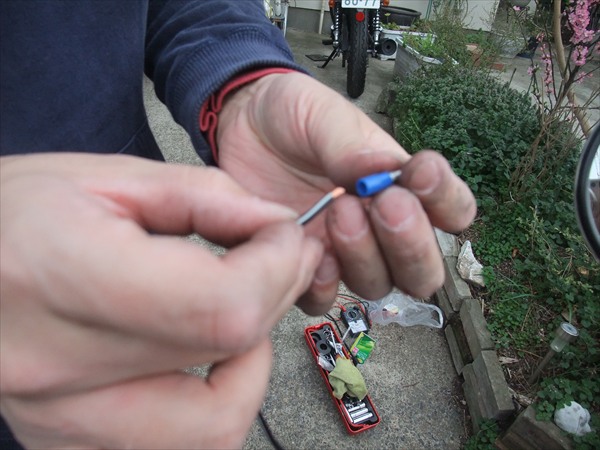 ちょうど工具箱の中に転がっていたオスの端子がドンピシャ合ったので使いました。