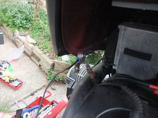 ヒューズボックスの蓋を閉めると当然ながら青の配線を噛み込んでしまいます。