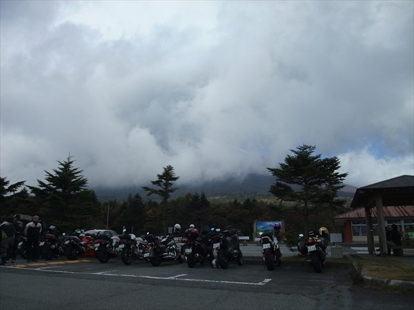 天気は快晴ともならず、肌寒い中水ヶ塚の駐車場で休憩です。