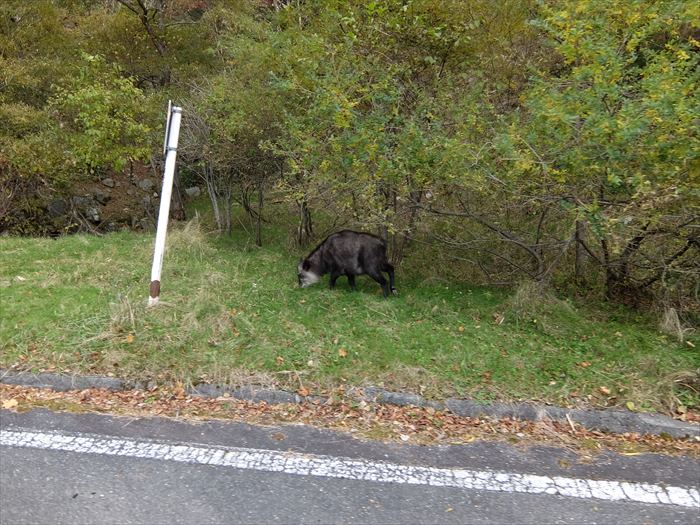 道中は路肩にカモシカが出てきたり