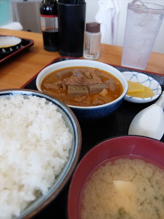 これが本日の注文!!もつ煮定食(半ライス)です。