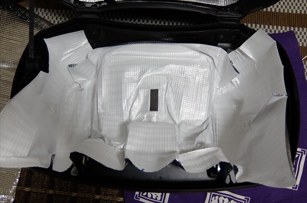 100均の銀マットを使って、上蓋だけ断熱化の小細工をした純正トップケース。