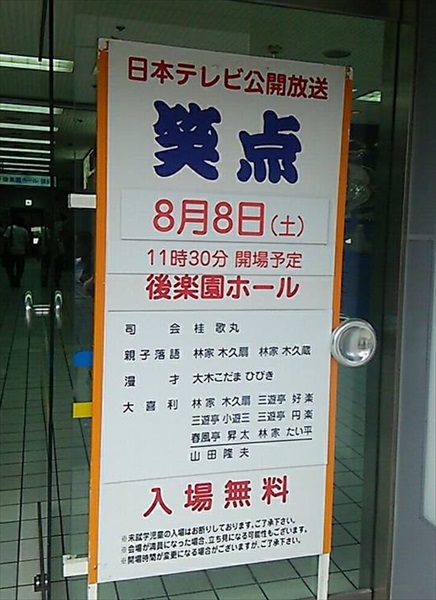 笑点の公開録画の観覧が当たったんです!