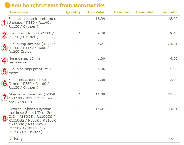 燃料ポンプ交換セットは構成部品が多いので、楽太郎にも検品をチェックして貰いましたw