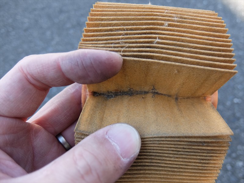 ヒダの奥には、このフィルターが頑張って働いた証が。今までご苦労さまでした!
