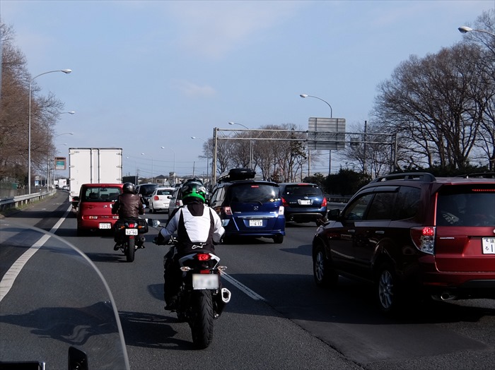で、そこから渋滞走行…やっぱり中央道は狭い!タンデムの大型ツアラーでのすり抜けはチト辛いですね~