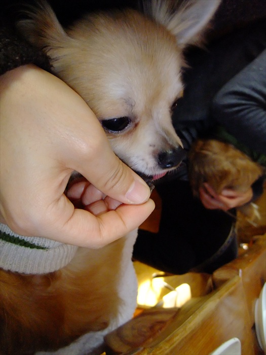 ワンコたちにゃマスターが自家製馬肉ジャーキーば振る舞ってくれんしゃったとです。