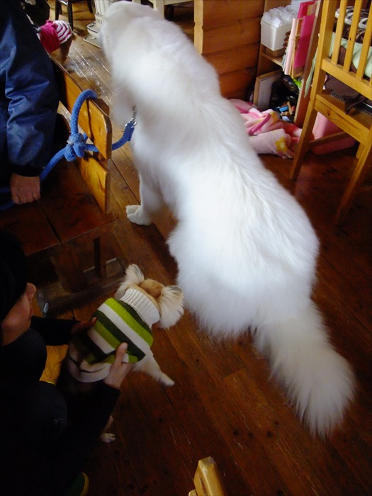 楽太郎と比べてみてくんしゃい。楽太郎の頭とピレニーズの肉球のおんなし位のふとさやない?