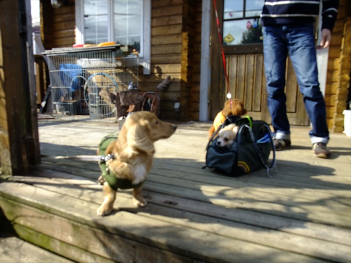 折角やけん、お店の前でワンコたちだけで記念撮影☆
