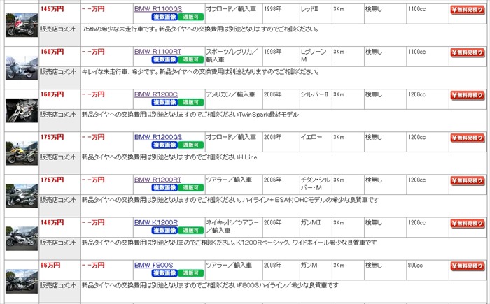 GooBikeとかで用もないのにR1100RTの中古車チェックとかしてみると…