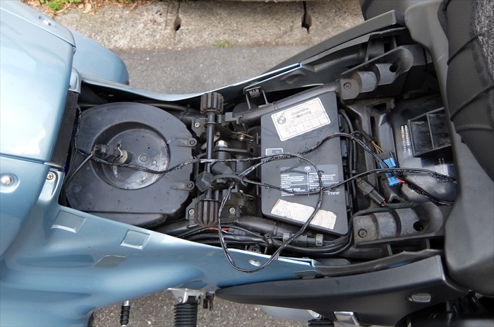 で、シートを外してバッテリーに接続してあるコードをシート下から外に引き出し、