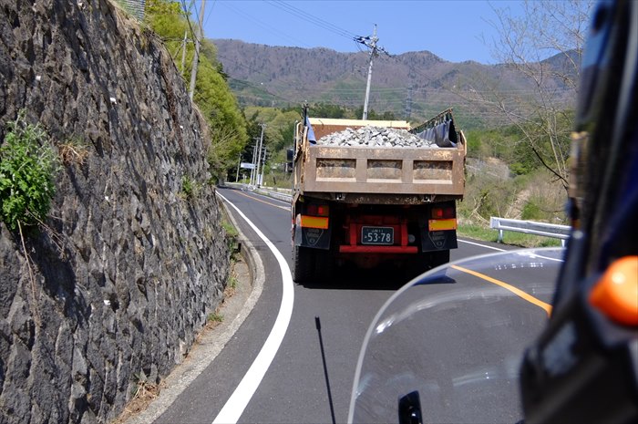奥多摩まで、こやつを含めて数台のダンプに入れ替わりで前を塞がれる事が多かったです。