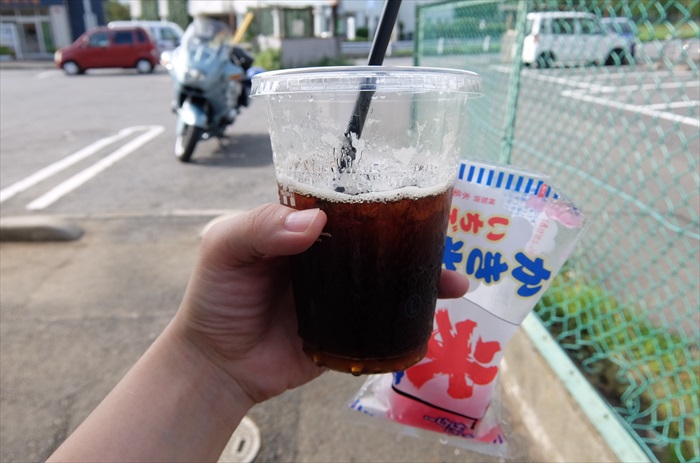 しかもかなりの気温と日差しで干し蛙になりそうだったので、コンビニで小休止。