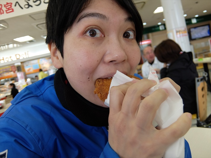 出発から150kmほど走ると腹も減ってきたので、メンチカツで腹ごしらえ。