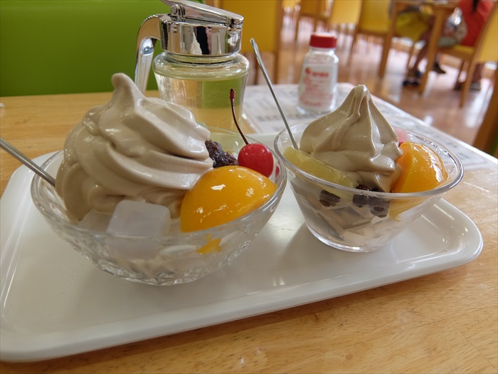 クリームあんみつ(普通)と、クリームみつ豆(ハーフ)でデザートタイム!