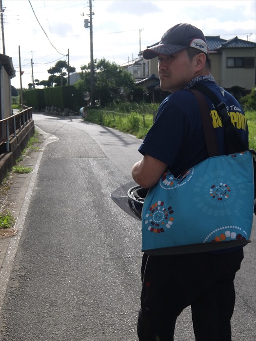メットを片手に、買い物したクーラーバッグを抱え田舎道をトボトボ歩くワタクシ…