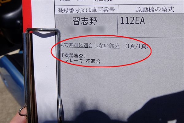 まずは同一性と灯火類の検査から。これは問題なくクリア。